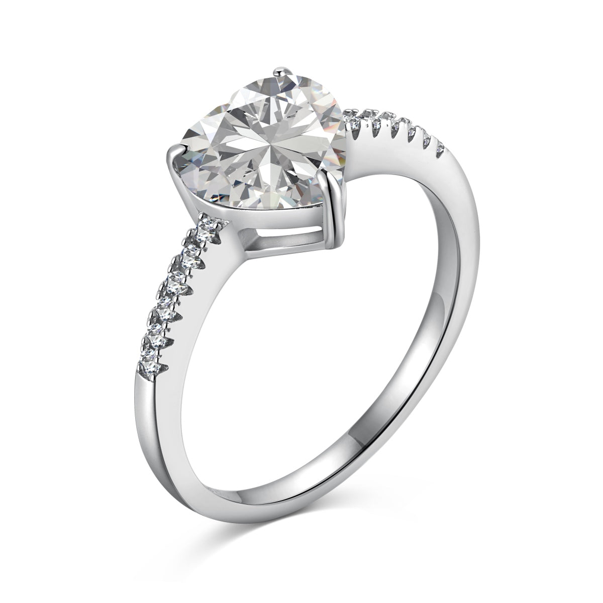 Small white heart ring, crafted from 925 sterling silver and rhodium plated for lasting shine and elegance.